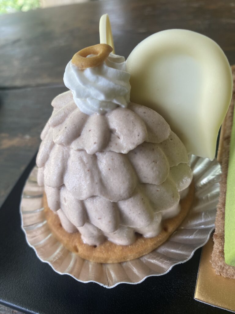 ちなみに、店内での撮影は禁止されているため、今回の写真はすべて購入後、外のカフェスペースにて撮影したものです。自然光の中でいただくスイーツは、よりいっそう美しく、特別感がありました。